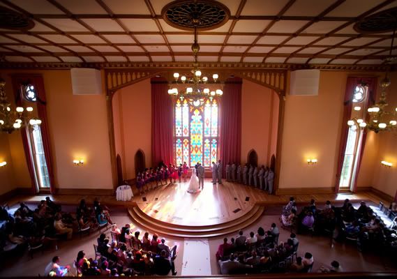The ceremony was held in the old House chamber. According to the wedding planne, Audi Brown, she said, "Jaime didn't want a lot of decor because the capital is beautiful in and of itself." Agreed. But a chick can never have too many flowers...