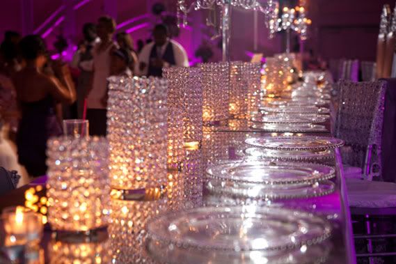 The ice sculpture above was inspired by an African symbol for perseverance, a tattoo, which Jamie has on her wrist. The symbol was used throughout the wedding on the invitation, menu and dance floor. The wedding planner said, "We wanted to incorporate the symbol as a nod to Jaime and Tyrus who have maintained their relationship all of these years."
