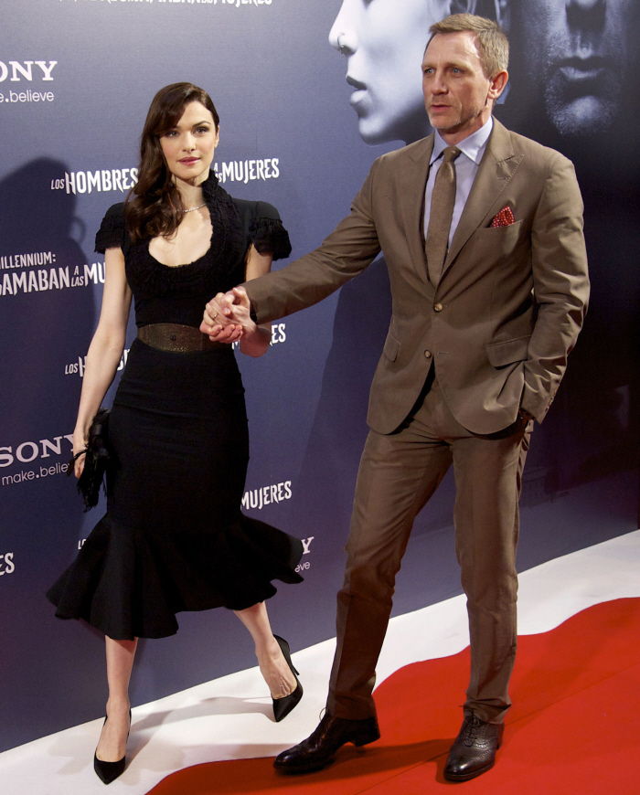 Daniel Craig & Rachel Weisz walk their first red carpet together: sexy or meh? Posted: 05 Jan 2012 06:46 AM PST Last night, Daniel Craig and Rachel Weisz walked their first red carpet together – as a married couple or otherwise. I just talked about this yesterday – I was surprised that Daniel and Rachel hadn't done any red carpets together for any of the premieres of The Girl With the Dragon Tattoo, and magically, hours later, Danny & Rach followed through. I don't want to say it's because of my musings, but it totally is. Anyway, Daniel and Rachel did their big red carpet debut in Madrid, for the GWTDT's Spanish premiere. Rachel is wearing Alexander McQueen. I'm not completely in love with the dress, but it's nice enough and Rachel looks pretty. Shortly after she and Daniel got married, she was in NYC, promoting a film, and she looked AMAZING. Like, she looked like she was coming off of an insane sex bender. Her skin was glowing, her body looked fantastic, and she just looked so happy. She looks happy here… but maybe a little tired? Maybe Daniel just wants to bone her, like, constantly. Maybe that's why he's so smiley and happy! He's all, "Check out my wife. I've already boned her three times today!" That being said, I no longer think Rachel is already pregnant. Look at that tiny waist! Not yet. But she might be soon. Last summer, I wrote about a story in which an eyewitness described Daniel and Rachel as "hotter than Brangelina." Which is still a question in my mind – now that Daniel and Rachel have done their first red carpet together, who is a hotter red-carpet coupling? Craig-Weisz or Jolie-Pitt? Honestly, I'd like to watch both couples. |