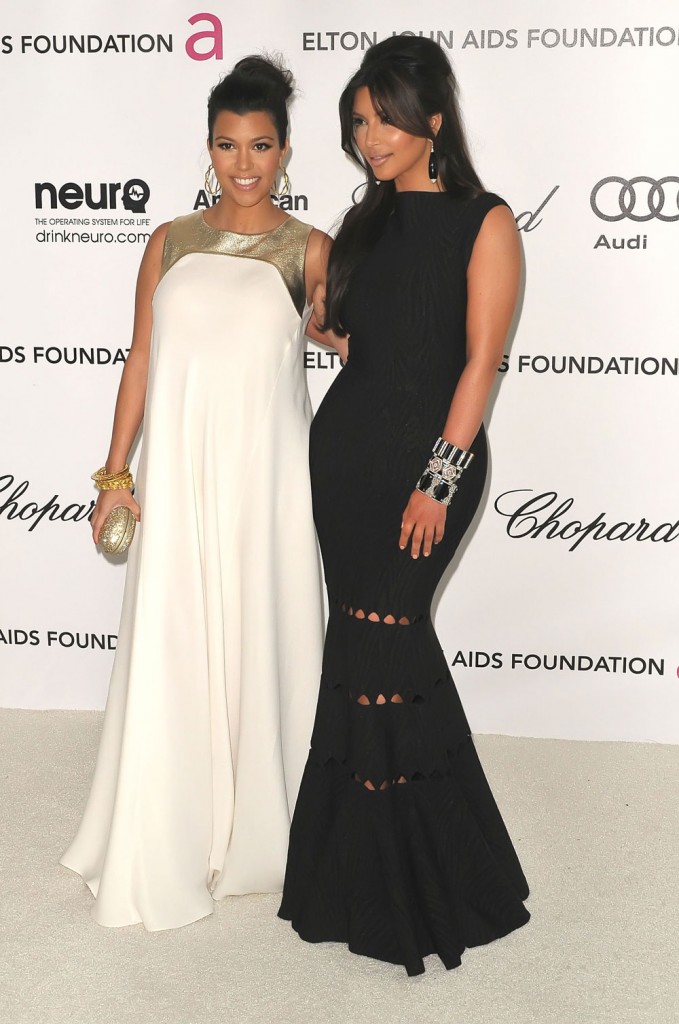 - Kim & Kourtney Kardashian at an Oscar Party: what’s white, black and orange all over?