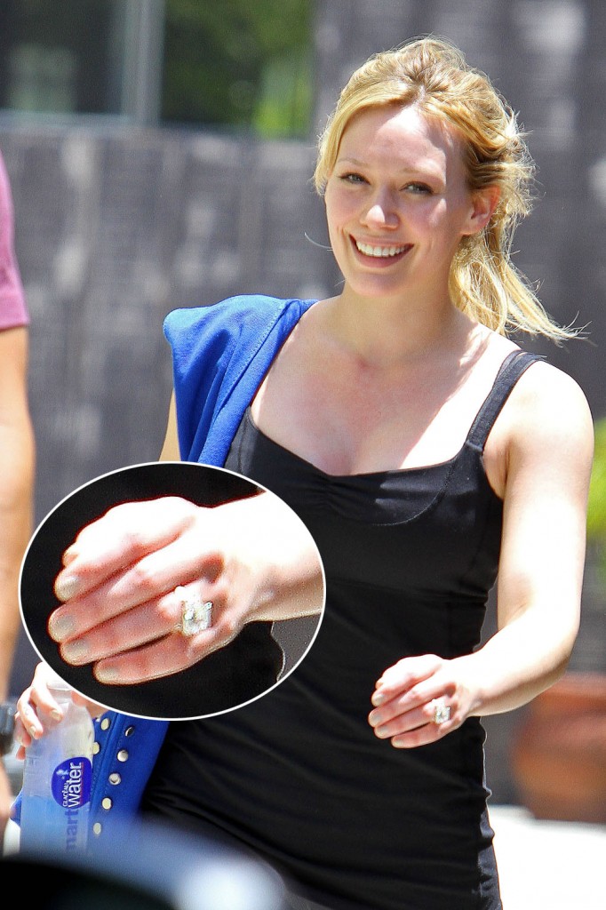 I googled “14 carat engagement ring” and came up with Hilary Duff’s whopping diamond ring, that looks like it would be hard to lift. That thing is a honker. Don’t get me wrong, I wouldn’t turn it down, but I would get a dream house for that money, instead of wearing it on my hand and worrying that it would get stolen. I also spent some dreamy moments looking over diamond engagement rings on Blue Nile’s website, and they have a 15 carat diamond for 1.13 million and a 12 carat diamond for 1.69. (The more expensive one has better clarity.) So it looks like the dude from Nickelback gave Avril Lavigne a ring that was worth at least 1.2 million dollars. I would wonder how he came up with the money, but I guess Nickelback had some hits last year that I barely heard of and they’ve been touring and stuff. Well Avril and the Nickelback guy seem perfect for each other. They’re both Canadian singers, they both had their best hits in the late 90s/early 2000s, and they probably share the same inflated sense of self worth. I jest, sort of, I think Avril has grown as a person and isn’t as insufferable as she used to be. Plus I know little about Chad Kroeger, except that when I type “Chad Kroeger” into google, the words “douche” and “douchebag” come up as automatic search suggestions. See – perfect for each other! Hilary Duff with her 14 carat engagement ring in 2010. So when are we going to see Avril’s? I predict a photo op soon. Avril last night. She didn’t wear her ring! Photo credit: FameFlynet, PCNPhotos and WENN.com |